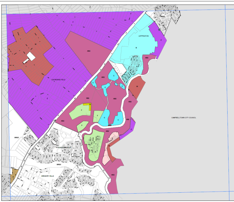 Camden Council in south west Sydney: All of the purple area is minimum block size of 2ha. Image via Camden Environmental Plan 2010