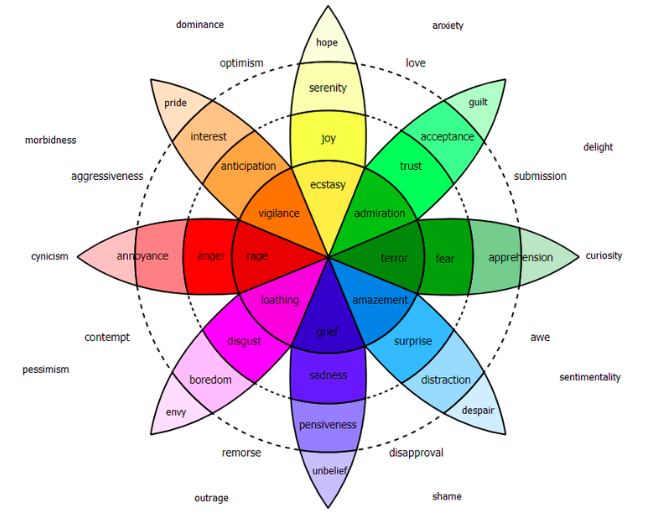 To help me, I referred to an image of Plutchik’s Wheel of Emotion